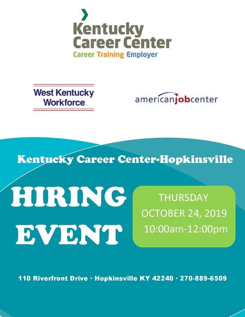 Muhlenberg County Coal - Pride Mines Rapid Response EventGenesis Coal Mine Rapid Response MeetingsBrazeway Rapid Response EventsCareer Fair 2020 a Win Win for Jobseekers and EmployersCalvert City Convalescent Center Hiring EventFort Campbell Job FairHopkins County Job Expo 2020Genova Rapid Response Event